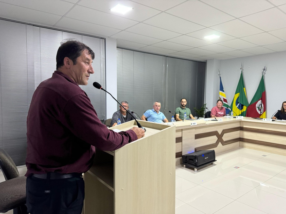 Participaram da sessão também, o prefeito Vantuir Dutra, e fizeram o uso da tribuna, o Secretário de Saúde, Etiberê da Rosa e a Secretária de Urbanismo, Clemilde Fátima Debona Belusso.