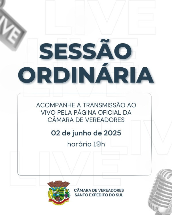 Nesta segunda-feira, dia 02 de junho, ocorre o primeiro encontro legislativo do mês de junho, na Câmara Municipal de Vereadores. A sessão pode ser acompanhada ao vivo através da transmissão ao vivo nos canais oficiais da câmara municipal no Facebook e Instagram, a partir das 19h.